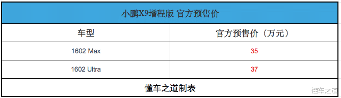 【懂车之道 产品】近日,懂车之道获悉,1月6日,小鹏X9增程版正式开启预售,共推2款车型,预售价分别为35万元和37万元。下面,和大家一起来看看新车的产品力如何?